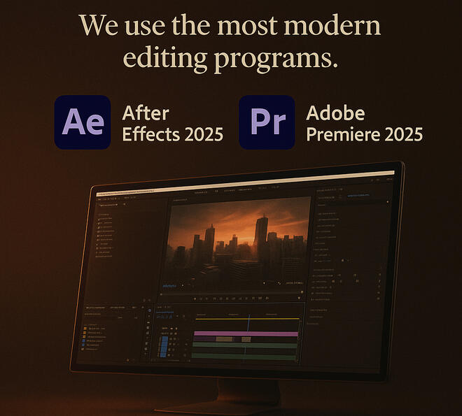 We use the most modern editing programs, Such as After Effects 2025 / Adobe Premiere 2025.Which will elevate your work without any limitations and makes you stand out from all your competito